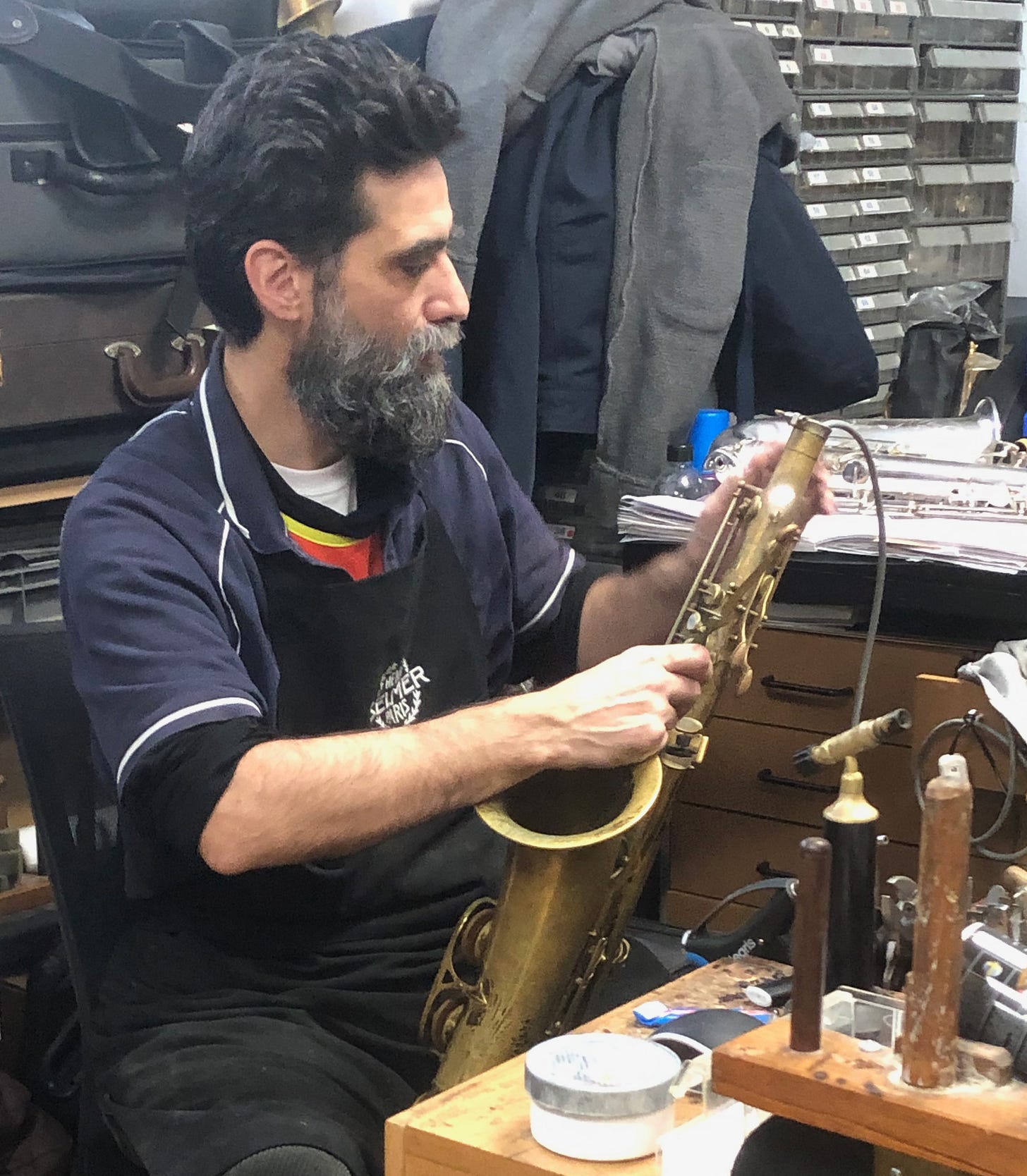 And Francesco Geminiani. For a saxophone player, having an appointment in Selmer’s inner sanctum with Martin Deutsch, Selmer’s saxophone technician and repairer, is like having an audience with the Pope, or going to Mecca and kissing the Black Stone, or to the Temple Mount to — sorry, terrible analogies; let’s just say it’s a big deal. Not an everyday experience. A sign that, as a musician, as a horn player, you have arrived.