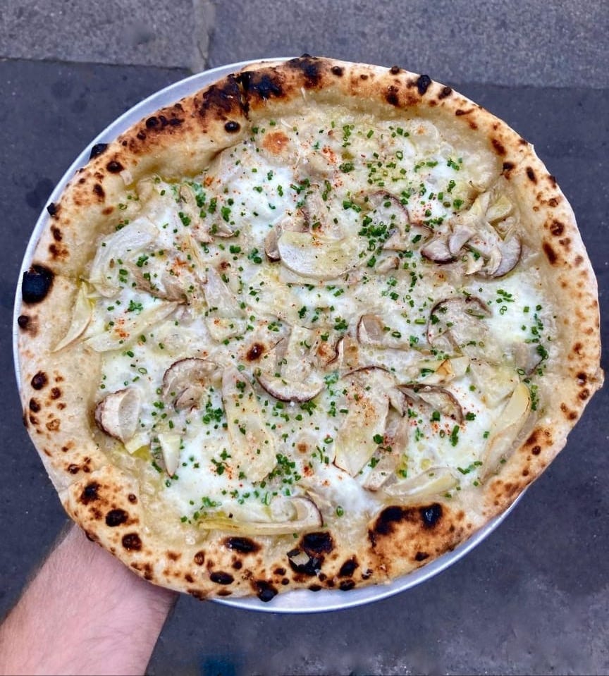 Unfortunately, the photos Hanzhou took made it look like bat sick. So, we’re going instead with his very close second choice, the cep mushroom and scamorza pizza he had a few days before at Le Rigmarole, aka since September and through till some time in February, Pizzamarole. The couple who run it, Robert Compagnon & Jess Yang, had a baby in October and have temporarily given the restaurant over to Dan Pearson, a baker, who, according to Hanzhou, “is making the best pizza in Paris. The dough is all sourdough, it is made every day and slow fermented. The crust is crisp and the right thickness for my taste. A tad heavy on the toppings, but they all have purpose and are tasty.”